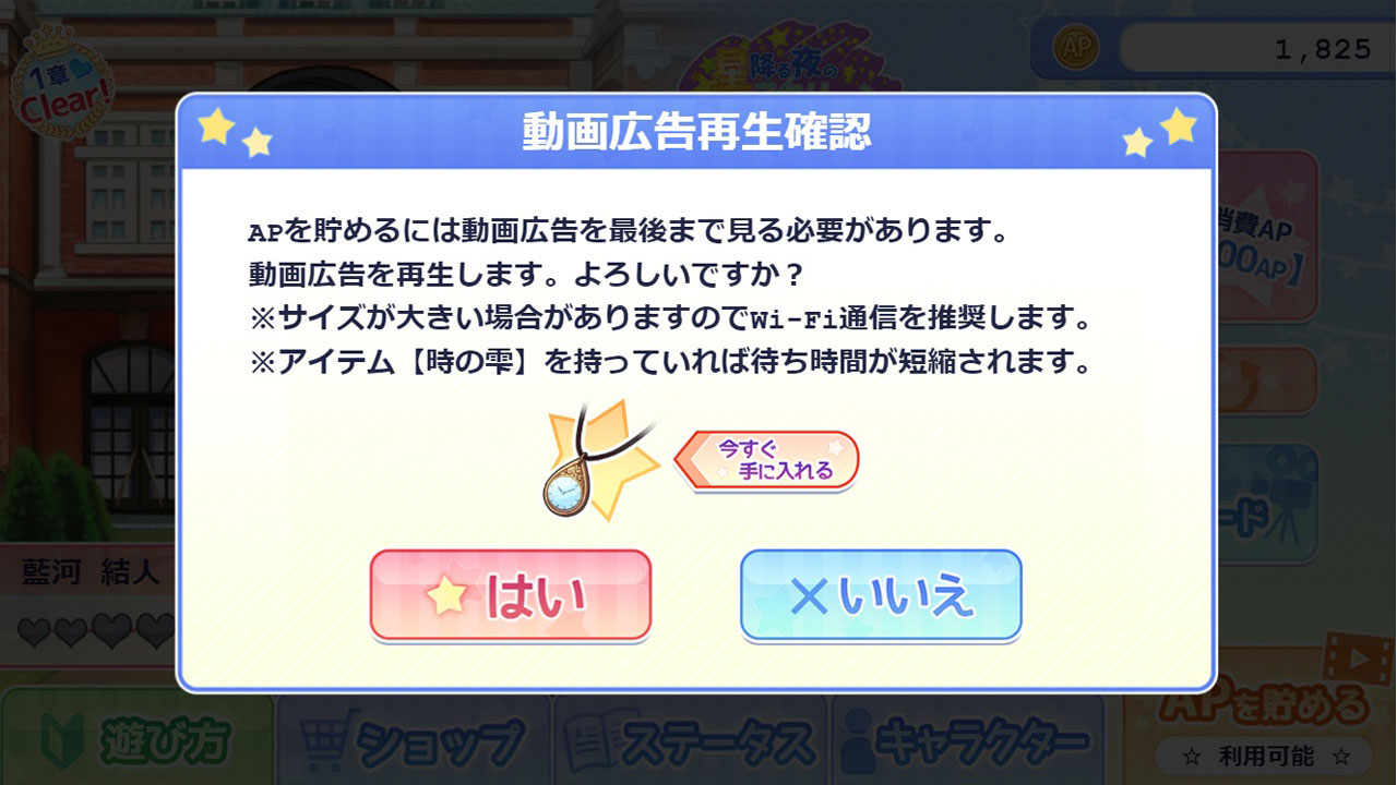 APは物語を進めるために消費するほか、アイテム購入、回想モードでの過去シナリオ再生などにも使用できます。