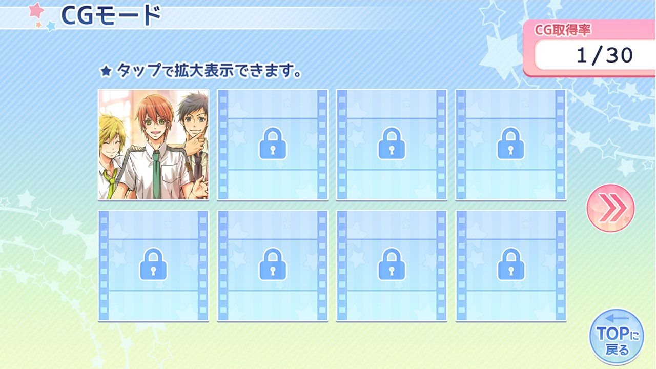 開放済みのスチルCGは、CGモードでいつでも見返すことができます。