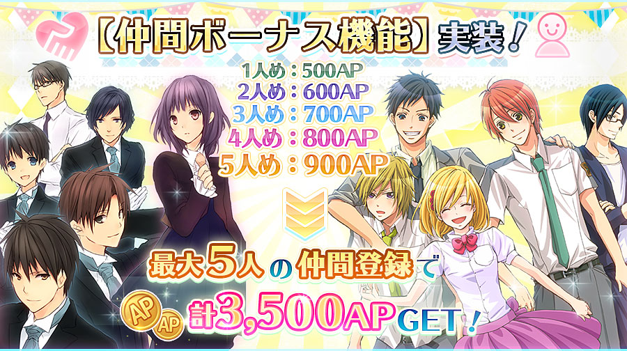 もっと仲間を登録すれば、2人めは600AP、3人めは700AP……と増えていくんだね。早速、他の友達にも声をかけてみよ――