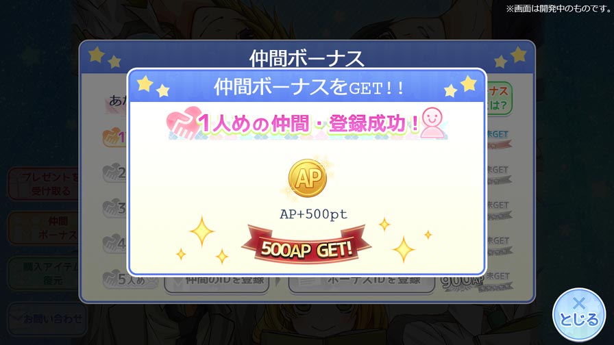 1人めの仲間登録:500APゲット!